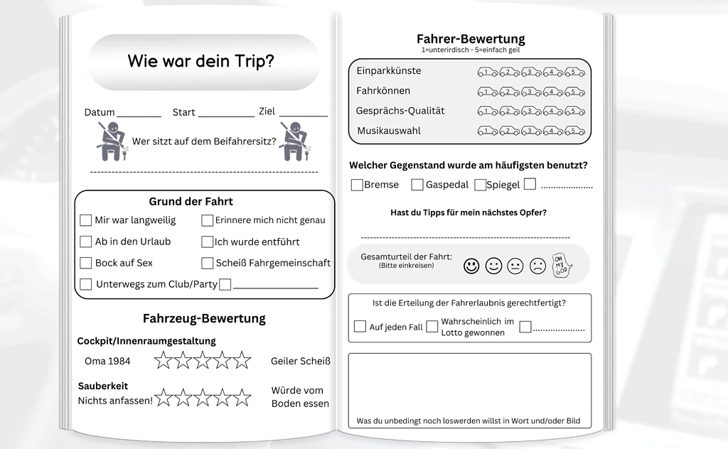 Das perfekte Beifahrer-Gästebuch – Mehr Spaß und Unterhaltung auf jeder Autofahrt!